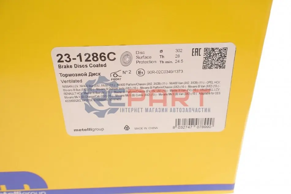 Metelli 231286C диск гальмівний (передній) Renault Master 10- (302x28) (з покриттям) (вентильований)
