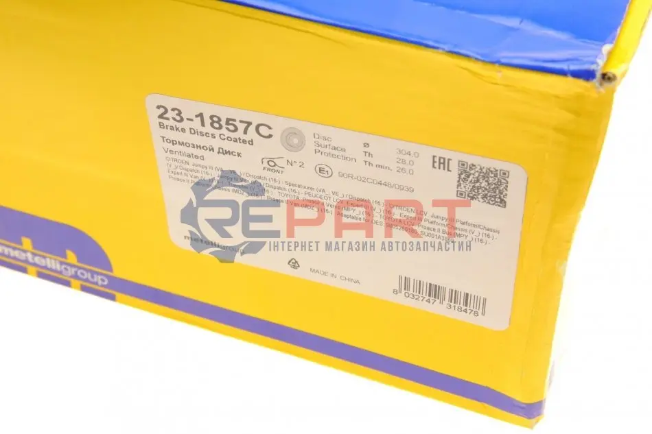 Metelli 231857C диск гальмівний (передній) Citroen Jumpy/Peugeot Expert 16-/Opel Vivaro 19- (304x28) (з покр.)(вент.)