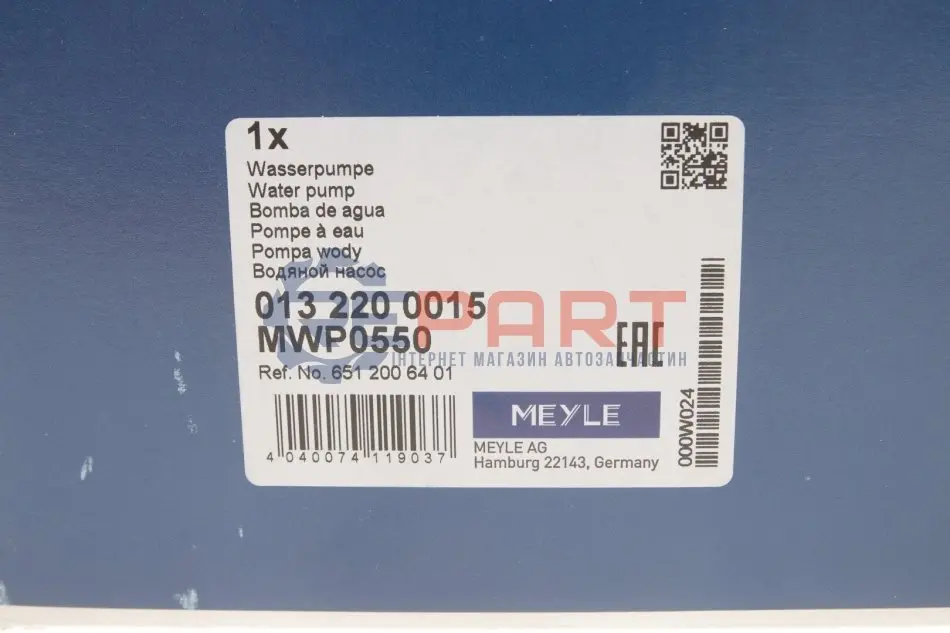 MEYLE 0132200015 помпа води MB C-class (W204/S204)/E-class (W212)/Vito (W447) (OM651) 08-