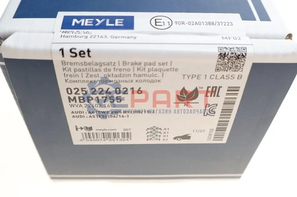 MEYLE 025 224 0216 колодки гальмівні (передні) Audi A4/A5/A6/A7/Q5 15-