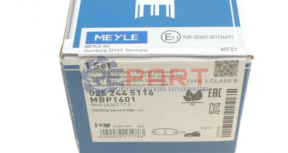 MEYLE 0252445116 колодки гальмівні (передні) Toyota Prius 08-/Corolla 12-/Lexus CT 10- (Akebono)
