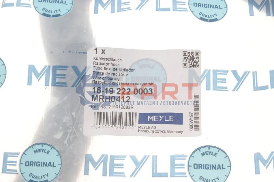 MEYLE 16-19 222 0003 патрубок радіатора Dacia Dokker/Duster/Logan/Sandero/Renault Clio 1.5 dCi 12-
