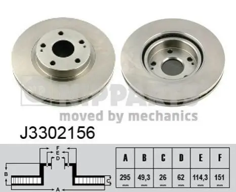 NIPPARTS J3302156 диск гальмівний (передній) Toyota Avensis/Corolla 03-09 (295x26)