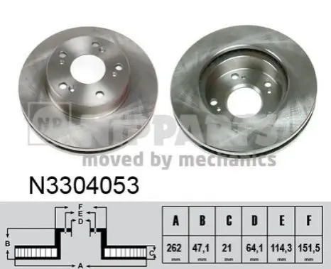 NIPPARTS N3304053 диск гальмівний (передній) Honda Civic VII/VIII 05- (262x21)