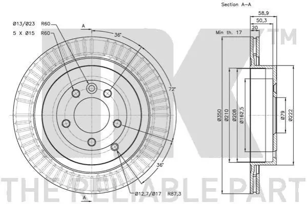 NK 204029 диск гальмівний (передній) VW T5/T6/Touareg 02- (308x29.5) (вентильований)