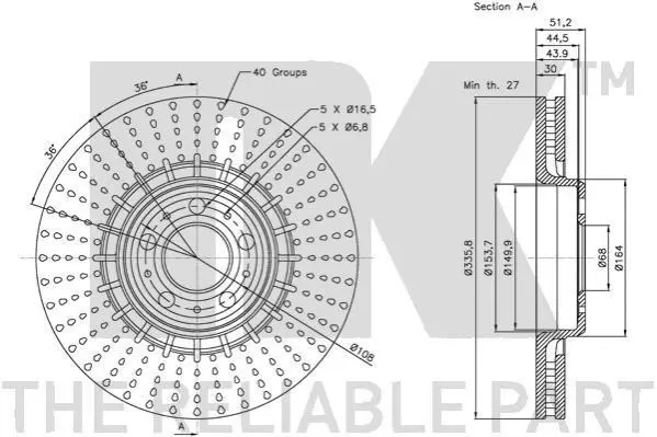 NK 204853 диск гальмівний (передній) Volvo XC90 02-14 (336x30) (вентильований)