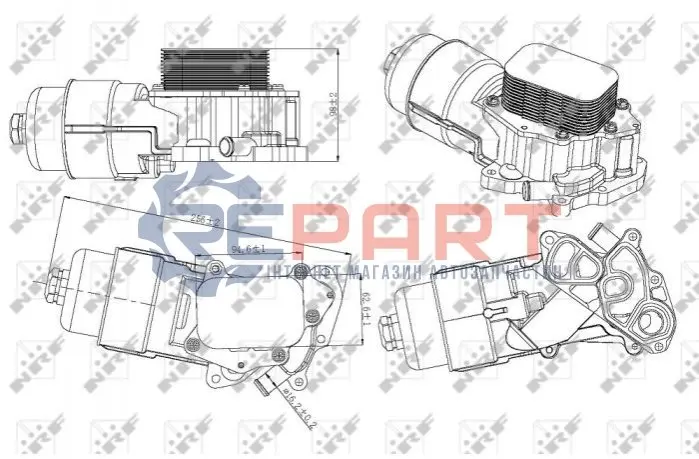 NRF 31328 радіатор масляний Citroen Berlingo/Peugeot Partner 1.6 HDI 05- (теплообмінник з корпусом фільтра)