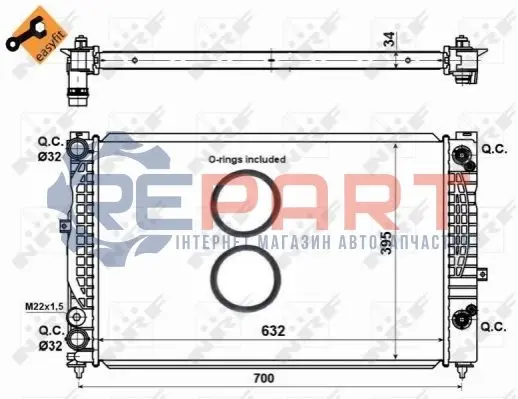 NRF 529504 радіатор охолодження Audi A4/A6/VW Passat 1.6-1.8T/1.9TDI 94-05