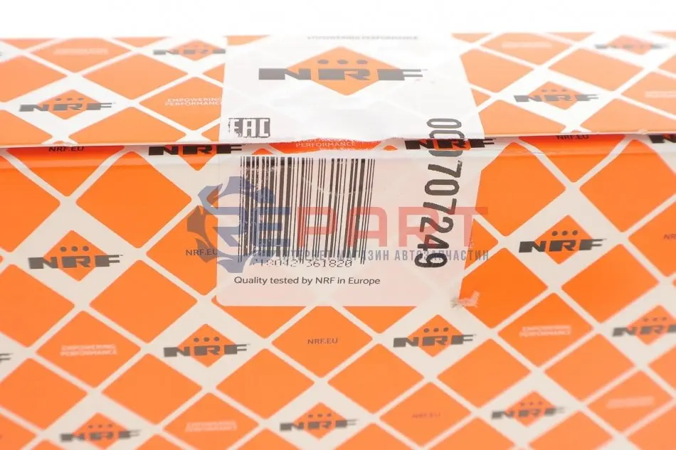 Під торговою маркою NRF випускаються наступні види запчастин: радіатори охолодження, серцевини радіаторів, радіатори інтеркулерів, радіатори охолодження масла. Запчастини NRF виробляються для легкових і комерційних автомобілів, сільгосптехніки. Також компанія NRF виробляє охолоджувачі для автомобільного та залізничного транспорту і широкий асортимент запчастин для автомобільних кондиціонерів (Конденсори, компресори, випаровувачі, осушувачі та інше).