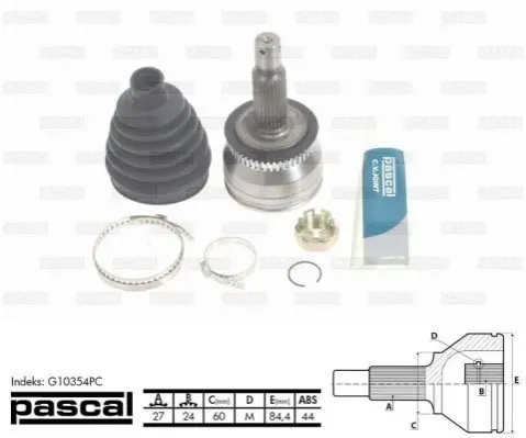 PASCAL G10354PC комплект шарнірів, приводний вал