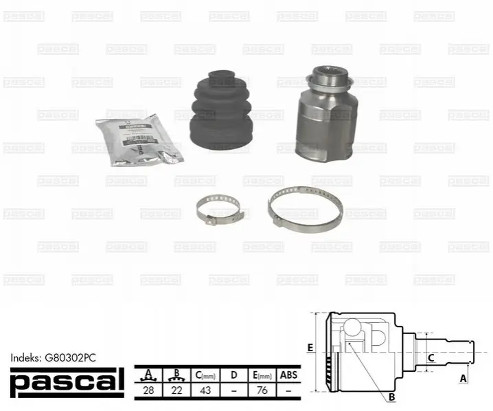 PASCAL G80302PC комплект шарнірів, приводний вал