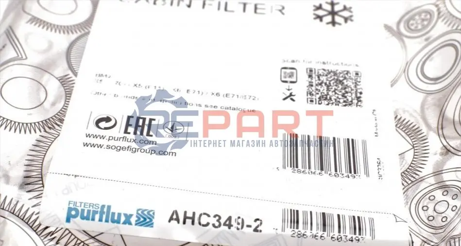 Purflux AHC3492 фільтр салону BMW X5 (E70/F15)/X6 (E71/E72) 2.0-4.8 07- (вугільний) (2шт)