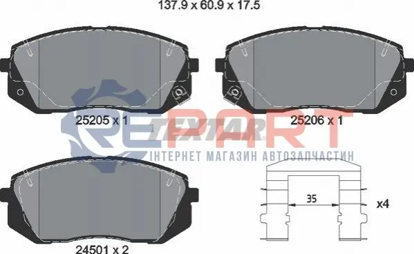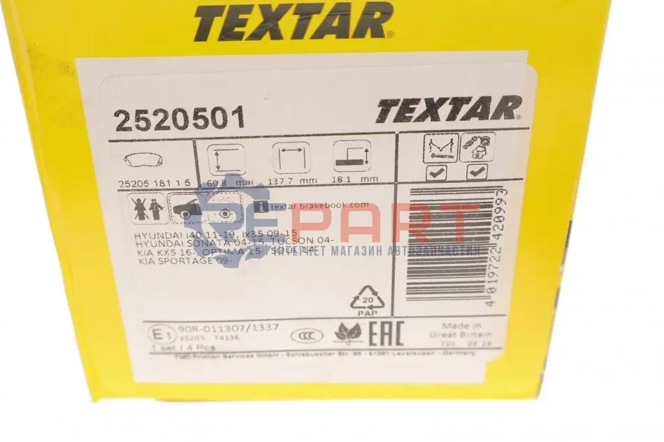 TEXTAR 2520501 колодки гальмівні (передні) Hyundai Tucson 04-/ I40 11-/ IX35 10-/ Kia Sportage 09- Q+