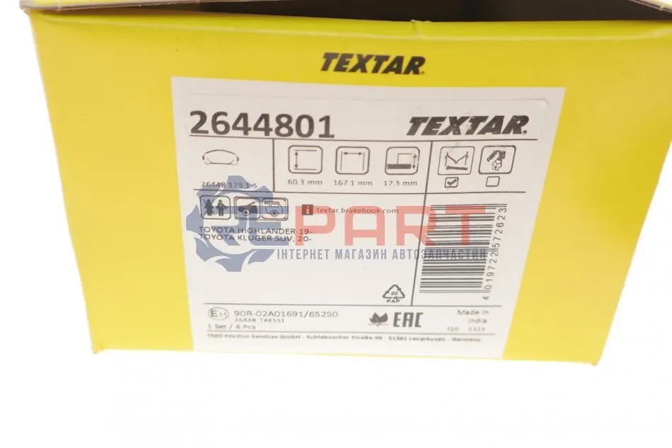 TEXTAR 2644801 колодки гальмівні (передніі) Toyota Rav4 20-/Highlander 19-