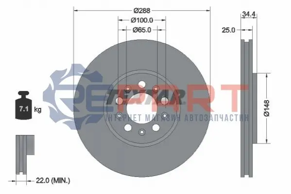 TEXTAR 92106605 диск гальмівний (передній) Skoda Fabia 99-/Rapid 12-/Roomster 06-15/VW Golf (287x25) PRO+