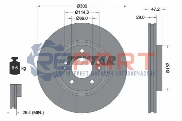 TEXTAR 92166505 диск гальмівний (передній) Hyundai Tucson 05-/ I30 II 11-/Kia Cee'D/ Cerato III 13- (300x28) PRO+