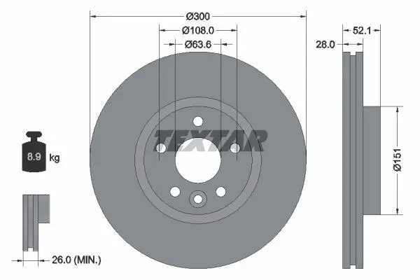 TEXTAR 92196903 диск гальмівний (передній) Ford Mondeo 1.6-2.5 07-15 (300x28)(з покриттям)