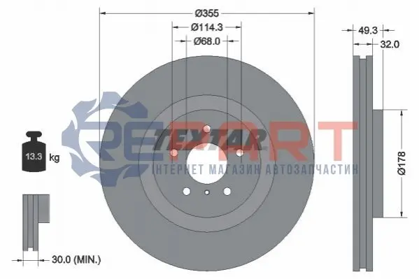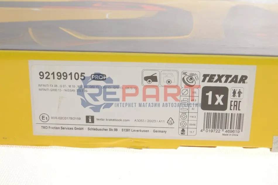 TEXTAR 92199105 диск гальмівний (передній) Infiniti FX/Q50/Q70/QX70 08- (355x32) PRO+