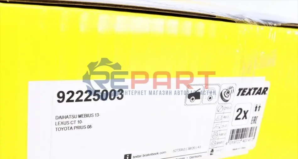 TEXTAR 92225003 диск гальмівний (передній) Toyota Prius 08- (255x25) PRO