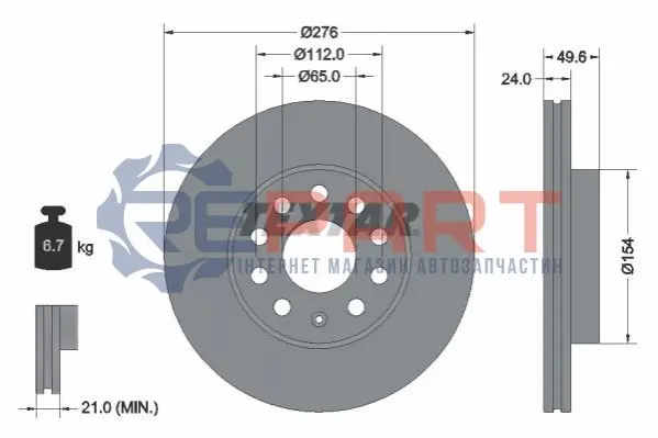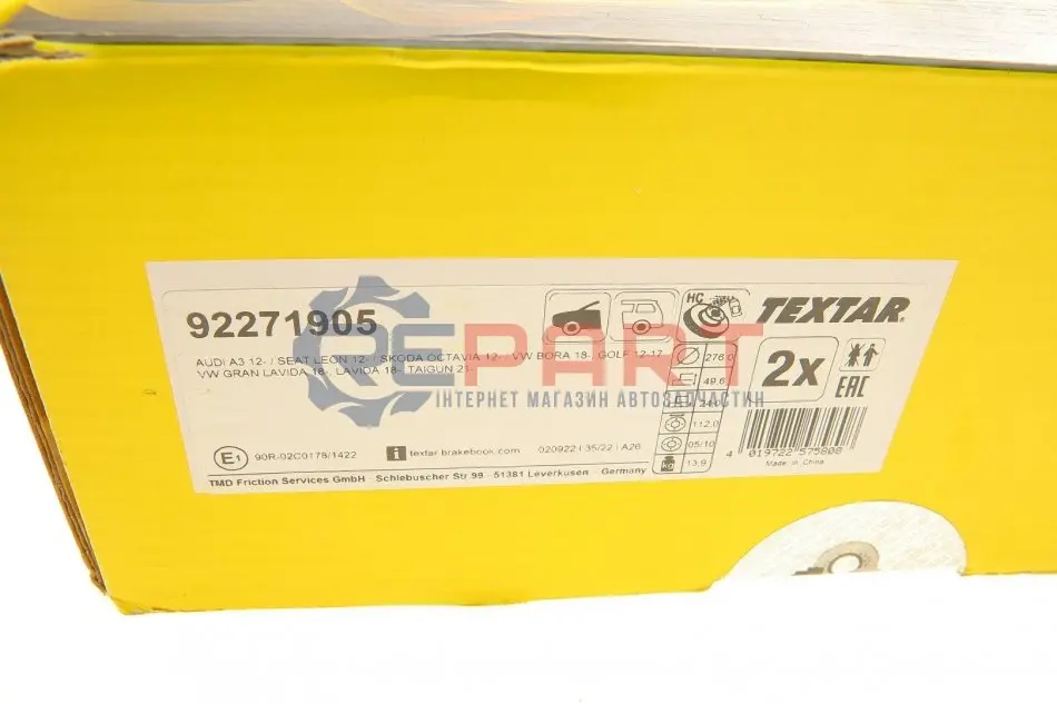 TEXTAR 92271905 диск гальмівний (передній) VW Golf VII 12- (276x24) PRO+