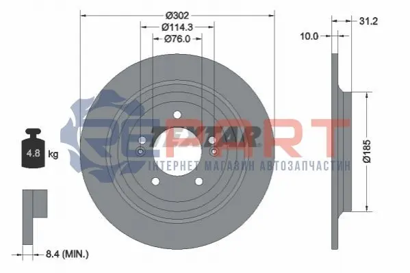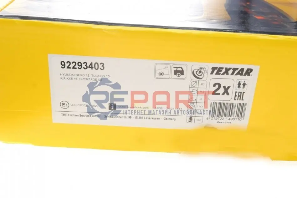 TEXTAR 92293403 диск гальмівний (задній) Hyundai Tucson II 15-/Kia Sportage 16- (302x10) PRO