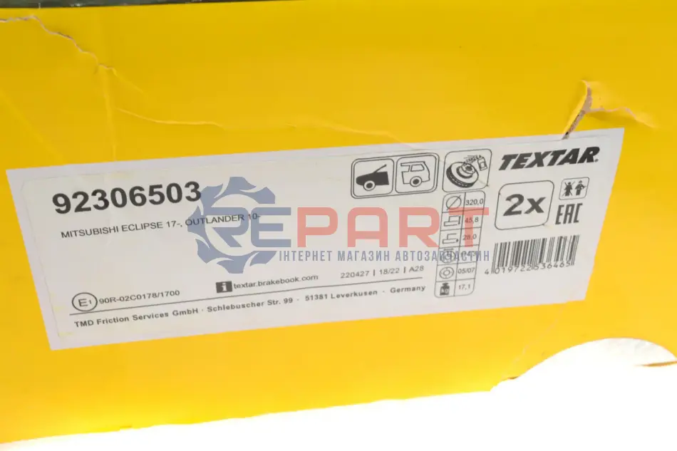 TEXTAR 92306503 диск гальмівний (передній) Mitsubishi Outlander 12-/Eclipse Cross 17- (320x28) PRO