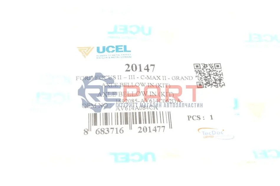UCEL 20147 комплект пильника РШ шарніра (внутрішній) Ford C-Max I/Focus II 03-12 (25x72x100) (гумовий)