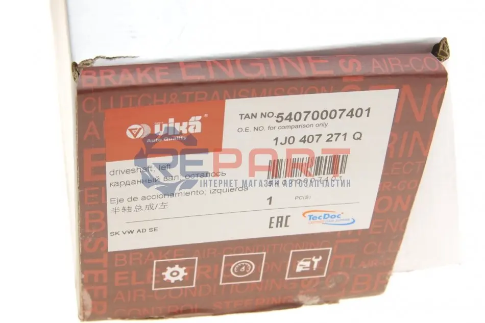 Vika 54070007401 піввісь (передня) (L) Audi A3 96-03/Skoda Octavia 96-10/VW Golf IV/Bora 97-06 (36z554.5mm)