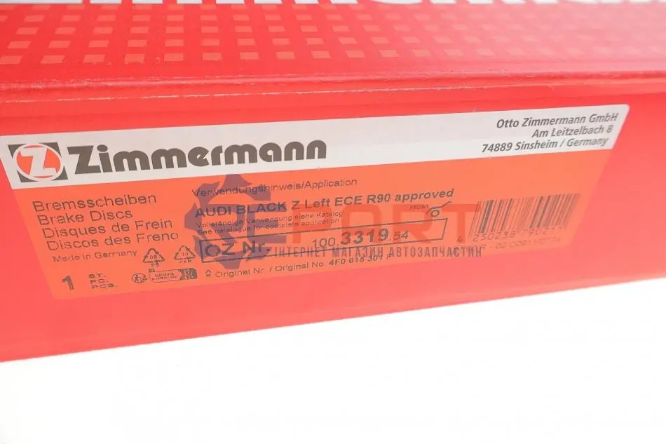 На своїх виробничих лініях в м. Зінсгайм (Німеччина) Otto Zimmermann виробляє стандартні, а також спортивні (перфоровані) гальмівні диски і складові диски Formula Z - преміальну лінійку асортименту Zimmermann.