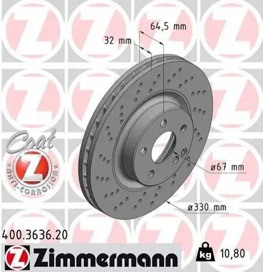 ZIMMERMANN 400363620 диск гальмівний (передній) MB E-class (W211) 02-08 (330x32)
