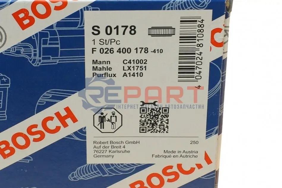 BOSCH F026400178 воздушный фильтр вставка