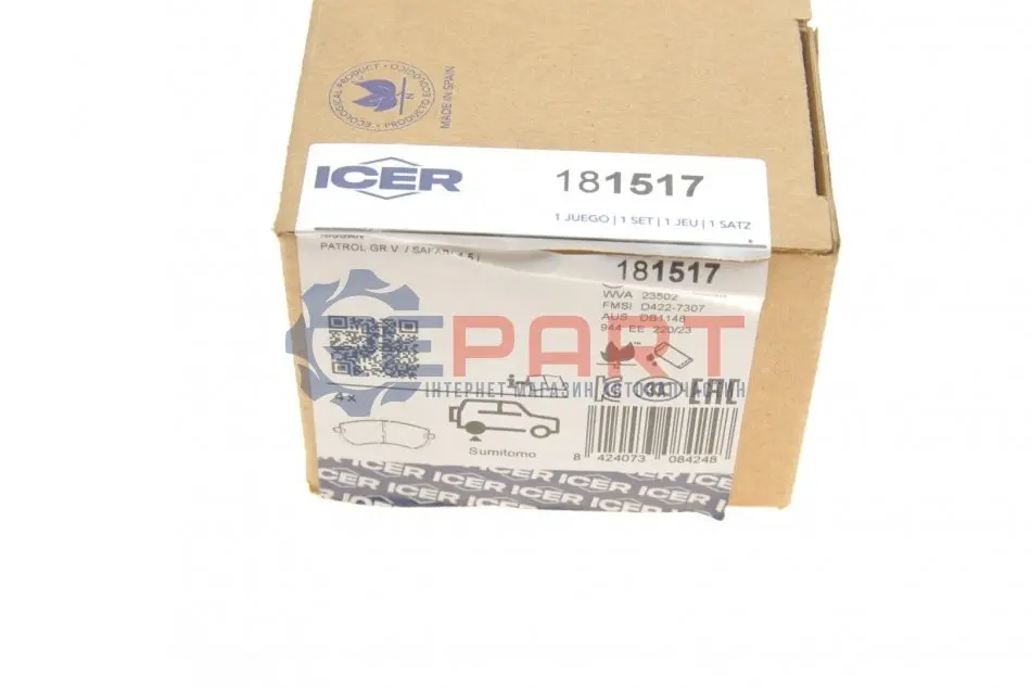 Всі гальмівні колодки Icer виготовляються у відповідності до європейських стандартів та норм, а також комплектуються необхідними аксесуарами і антискрипними пластинами та накладками, залежно від типів гальмівних систем і моделей автомобілів.