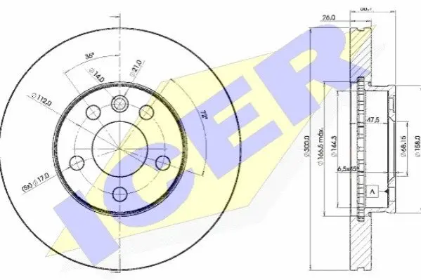 ICER 78BD15312 диск тормозной (передний) Ford Galaxy 95-06/VW Sharan 95-10/T4 96-03 (300x26) (с покр) (вент.)