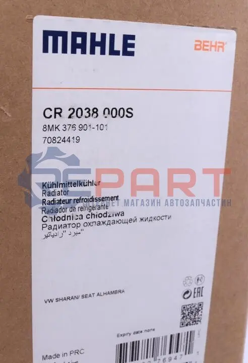 MAHLE CR 2038 000S радіатор охолодження VW Sharan 1.9/2.0 TDI 02-10