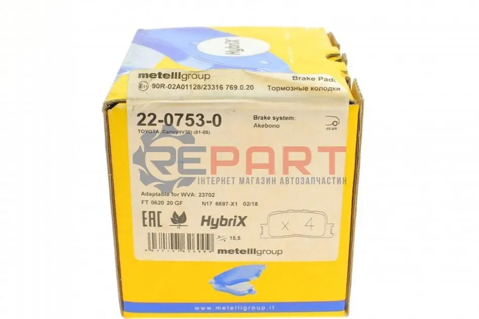 Metelli 2207530 тормозные колодки (задние) Toyota Camry 01-11/Highlander 00-03/Lexus ES 96-06