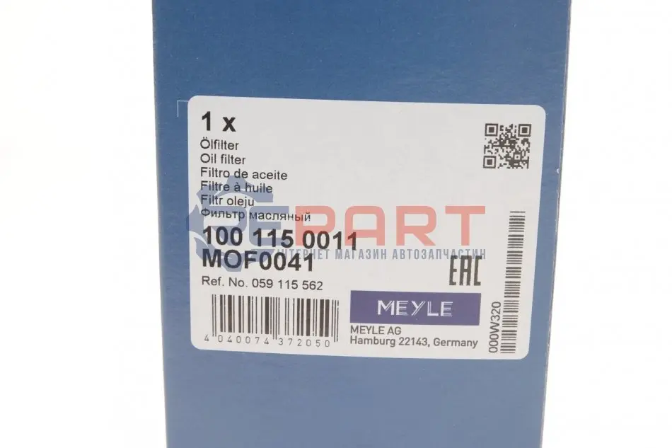 MEYLE 1001150011 фильтр масляный