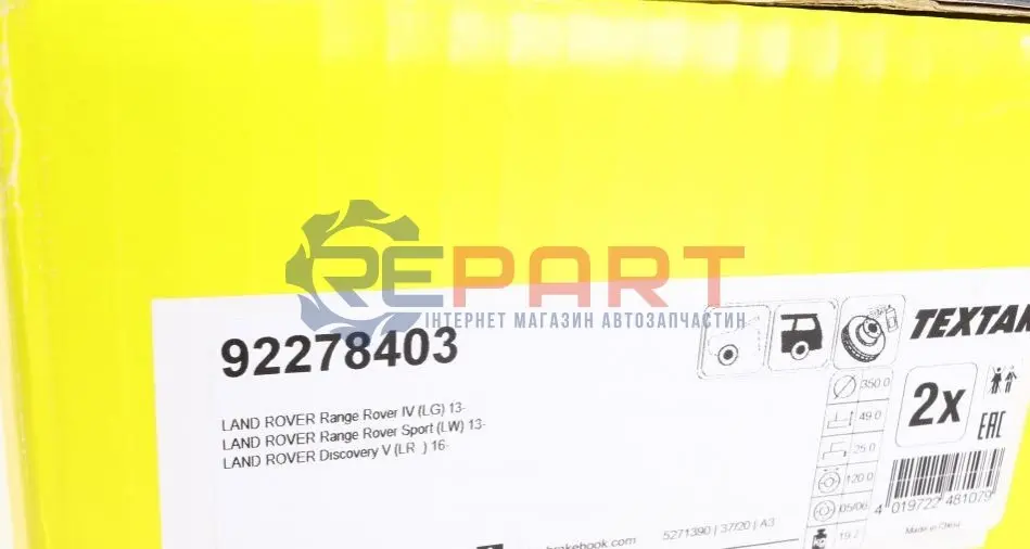 TEXTAR 92278403 диск тормозной