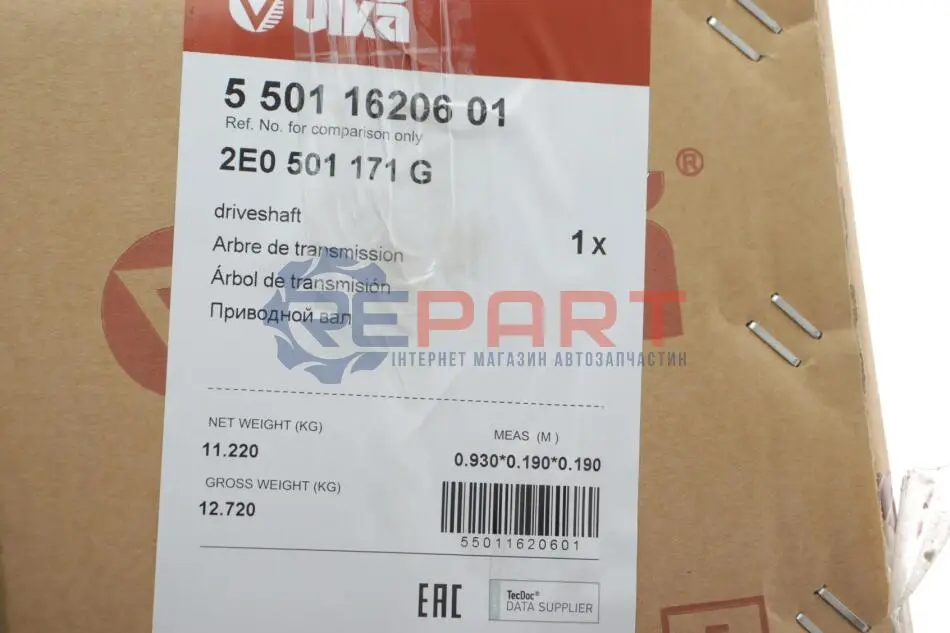 Vika 55011620601 вал привода с подшипником левый